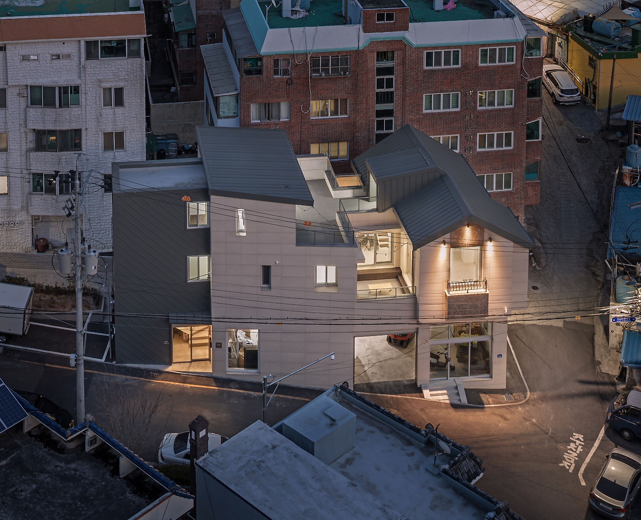 상가주택을 여러 채 설계하면서 도심 단독주택을 여러 유형으로 작업해서 좋은 반응을 얻었다. 상가주택의 최상층에 있는 단독주택은 땅에 접하지 못하고 공중에 뜬 집이지만 아파트보다 살기 좋은 집이 되도록 설계한 결과는 성공적이었다. 발코니도 없는 아파트와 다르게 작지만 마당을 두고 거실을 침실과 독립된 영역으로 나누니 세상에 하나밖에 없는 우리집이 되었다.