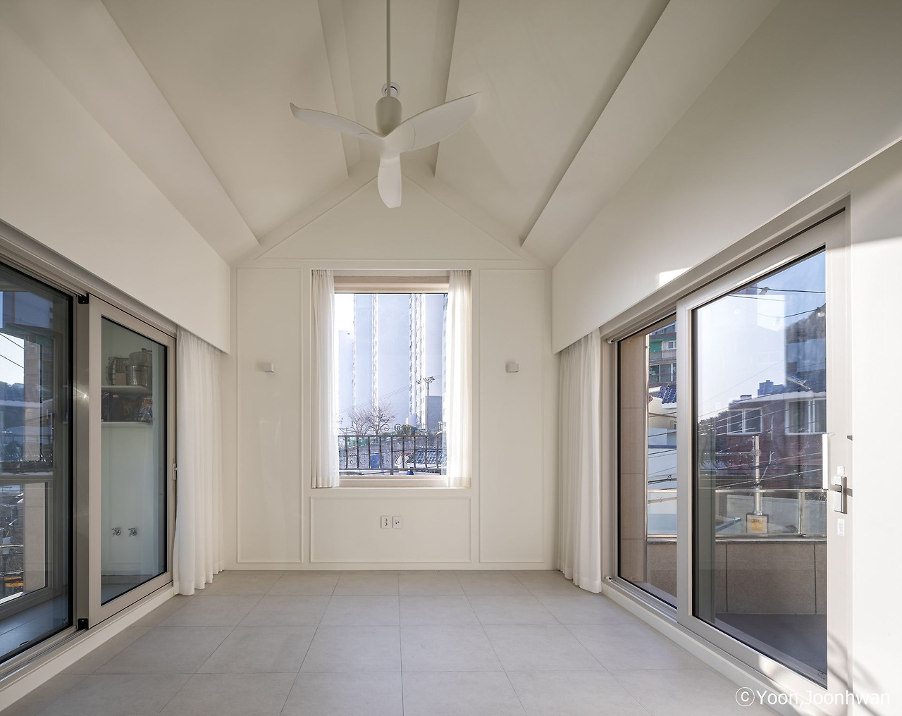부부 침실은 이층에 둘 수 없는 건축면적이라 삼층에 두었다. 이 방은 옥상 마당으로 완전한 남향으로 별채나 다름없다. 거실채에서 다락을 통해 부부침실로 이어지는 경로도 이 집에서 사는 매력이라 하겠다. 옥상 마당은 장독대도 두고 루프탑가든으로 꾸며 우리 집만의 특별한 외부공간으로 쓸 수도 있다. 양명재陽明齋라는 당호처럼 이 집은 밝은 남향햇살이 온종일 집안을 채운다.