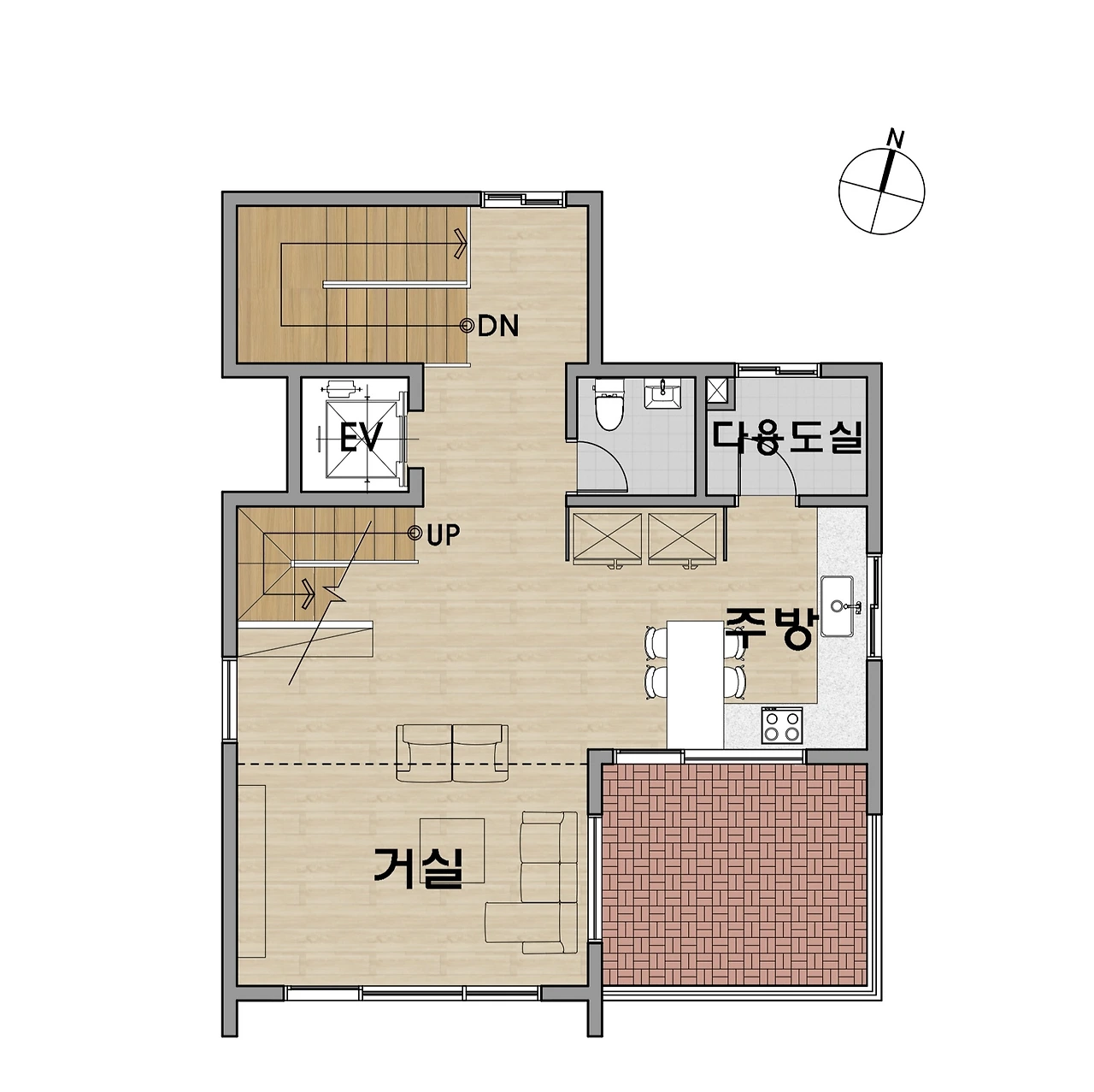 아파트에 없는 건 다락이 들어갔고 옥상에 마당을 두었다는 것이다. 사실 옥상 마당은 쓰임새가 떨어지고 거실과 주방은 아파트나 다를 바가 없다. 내 머릿속에 그리고 있었던 집은 건축주 식구가 아파트를 나와 살아야 할 분명한 명분이 담겨 있는데 실현될 기회를 놓치고 말았다. 만약 나와 설계 계약을 해서 진행했다면 건축주의 식구들은 삶이 달라졌을 것이다. 설마 그럴까라는 의문은 이어지는 글에서 확인해 보도록 해보자.