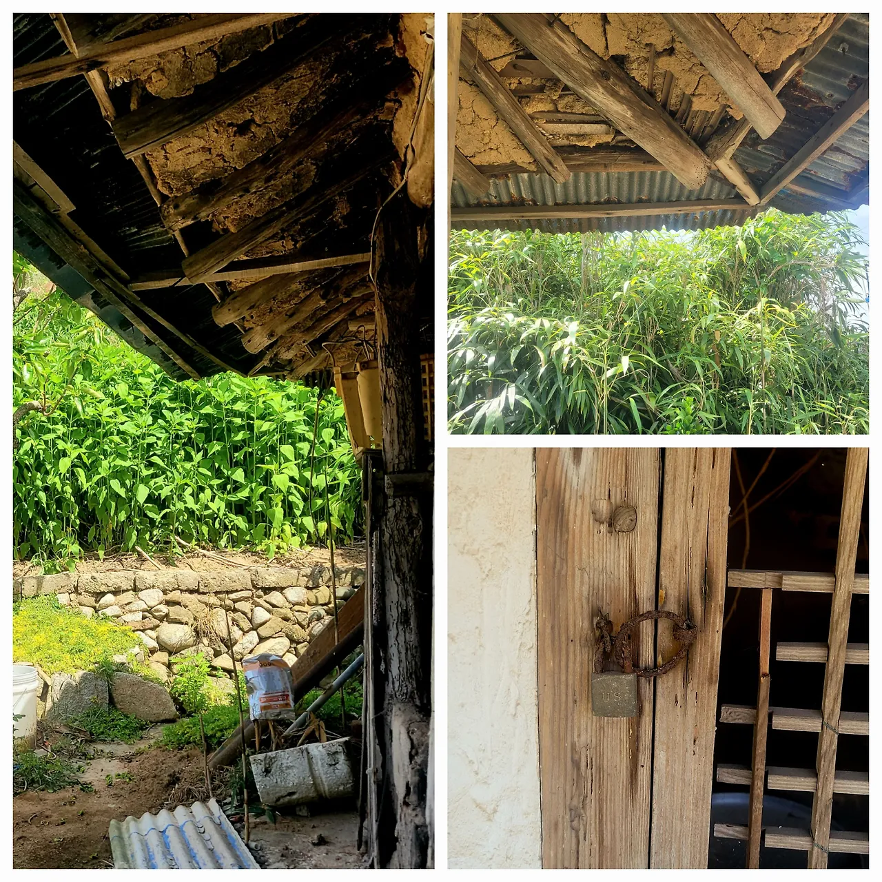우리가 머물렀던 숙소 주변을 산책하다 보니 폐가가 눈에 들어왔다. 새 주소판에 세대주 이름이 적혀 있지만 집은 비워진지 꽤 오래된 듯 보였다. 지금 이대로 방치되면 머지않아 허물어지고 말 것처럼 보였다. 주인부부가 살았던 본채와 맞은편에는 방이 두 개가 들어있는 곁채가 있다.