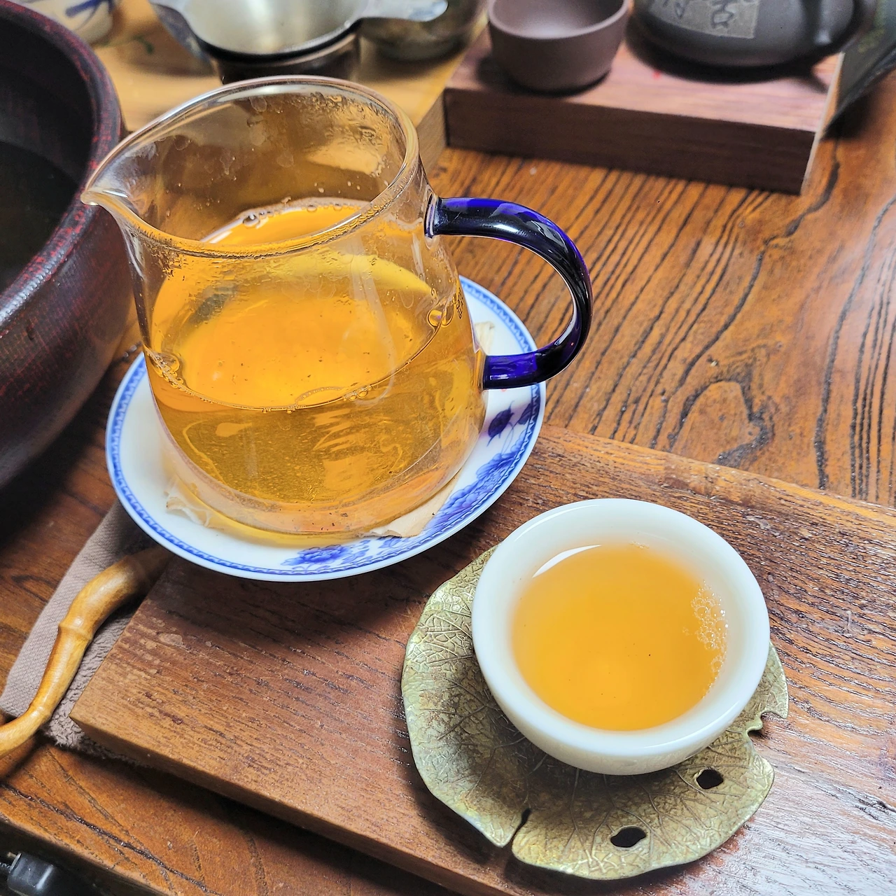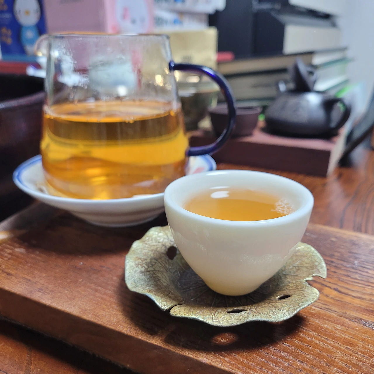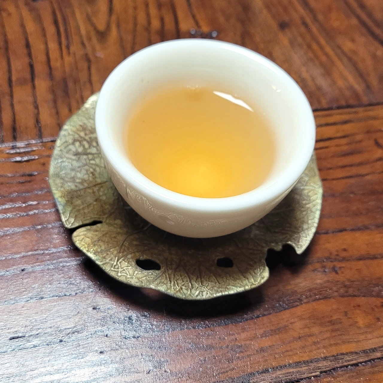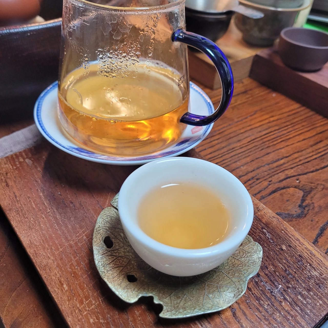 차 탕색은 황금빛으로 찻잔에 담긴 차탕을 보고 있노라니 눈이 부실 지경입니다. 차맛은 쓴맛과 단맛이 조화롭고 진한 탕감이 입안에 그득해 풍부한 질감에 목 넘김 뒤에도 입 안에 향미가 은근하게 남습니다. 찻물이 목구멍에 닿으니 매끄럽게 넘어가면서 입안에는 단침이 가득해서 청량감이 넘치네요. 떫은맛은 적당해서 차맛의 수렴성이 높아지니 박하당 차는 차맛에서는 넘치거나 부족한 게 없는데 제 구감으로는 밀향을 음미할 수 없다는 게 옥에 티로 아쉽게 느껴질 뿐입니다.