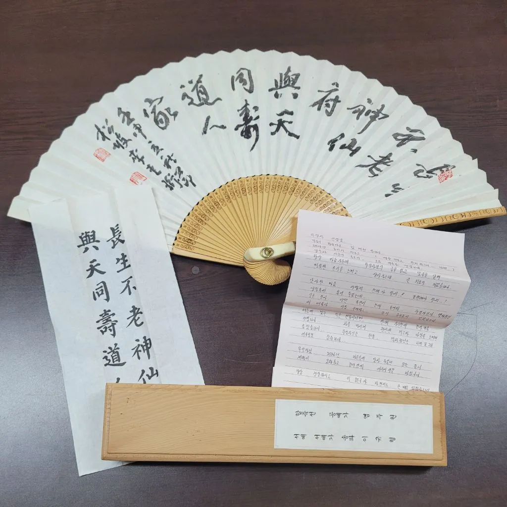 다우의 선물은 공예품 합죽선에다 직접 쓴 손 편지에 그동안 나눈 다정에 감사한다는 마음을 전해왔습니다.