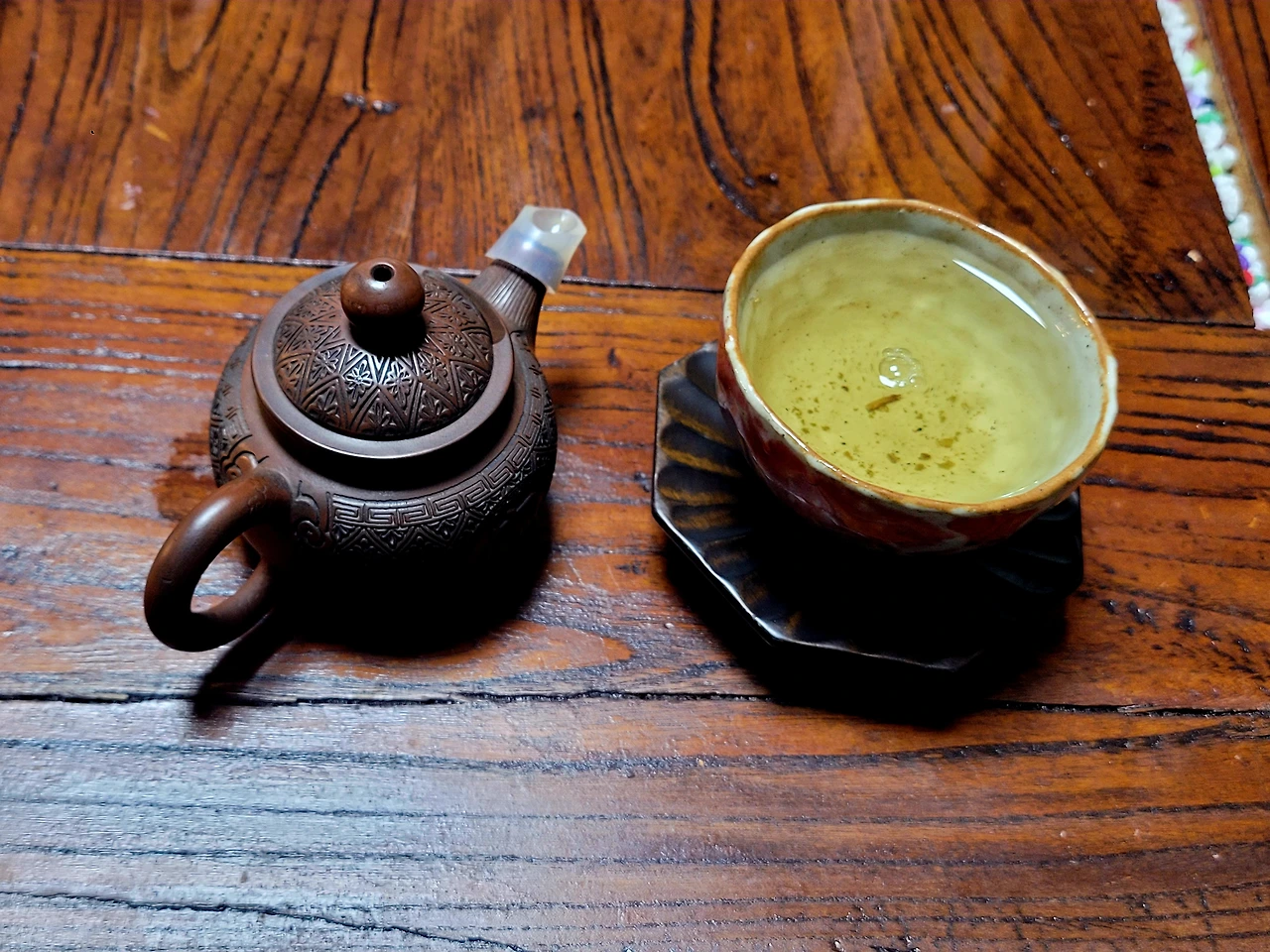 찻잔 한 잔 용량 60cc 건수자도 호에 찻물은 우리집 뒷산 약수터 물로 우렸습니다.