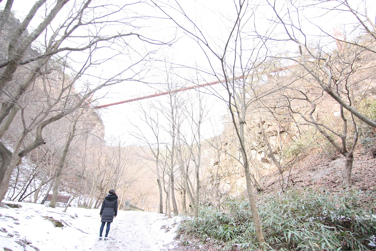 그렇게 걸어서 우리는 원하던 구름다리에 도착했다. 사실 처음에는 가는 길목에 뭔가 지나칠 수 없도록 존재하고 있을 줄 알았지만, 구름다리를 건너기 위해서는 등산을 해야 했다. 너무 평지를 걷고 있어서 높은 곳에 있을 것이란 생각을 안 한 것도 있지만 누피가 얘기해주지 않았다면 나는 아마 그냥 그대로 지나쳐서 구름다리가 어디 있나 하고 찾았을 가능성이 높을 정도로 정말 저~ 위에 덩그러니 다리 하나가 걸쳐져 있었다.