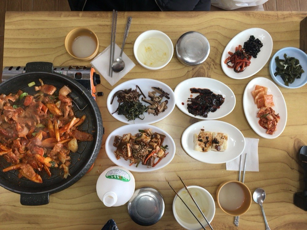 사실 맛도 보기 전에 버스표를 구매하면서 이미 동동주를 6통(;;;)이나 구매해버린 터라 이게 맛이 없으면 큰일 나는 상황이기는 했다. 둘 다 아침을 먹은 지 오래 지난 시간이 아닌 터라 크게 배가 고픈 상태는 아니었지만, 더덕이 정말로 맛있었다. 그냥 그거 하나로 모든 상황은 종료가 되었다.