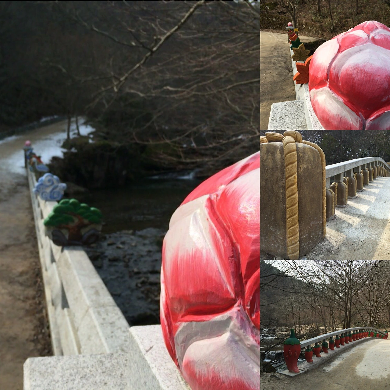 병풍바위 앞의 항아리를 시작으로 고추, 메주, 단풍 그리고 십장생을 콘셉트로 만들어진 작은 다리들은 아이디어가 돋보이기도 하고 아기자기한 귀여움도 있었다.