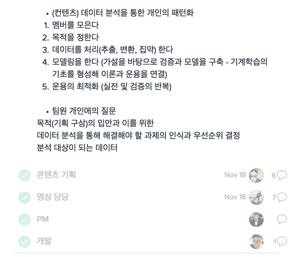 프로젝트의 전반적인 상황과 흐름을 파악하는데에는 위와 같은 솔루션적인 방식과 함께 인간적인 소통 방식이 필요합니다. 팀원들이 자신의 프로젝트에 너무 집중 한 나머지 다른 팀원 간의 1:1 혹은 1:다의 ‘크로스’ 할 수 있는 기회를 놓칠 수 있습니다. 따라서 프로젝트 하나하나의 세부적인 부분에 대한 리더의 집요한 팔로잉보다는 팀원들이 하나의 문제에도 여러가지의 관점과 해결의 실마리를 가질 수 있도록 하고 서로 중복된 업무, 의도치 않은 업무를 하지 않도록, 한 발자국 뒤에서 현재 진행되고 있고 앞으로 진행될 준비 중인 프로젝트들을 연결시키는 역할이 필요합니다.