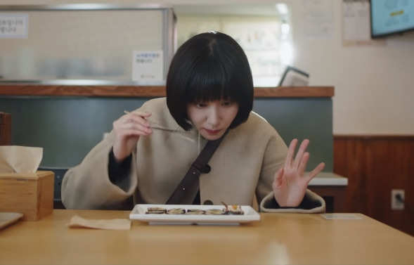 김밥에 들어간 재료를 확인하는 우영우 -이상한 변호사 우영후 1화 중-