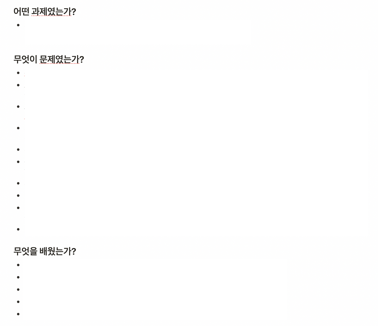 프로젝트 진행 중 아쉬웠던 부분에 대해 구체적으로 작성한다.