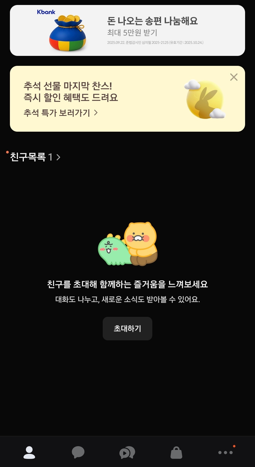 디폴트탭에 친구 목록은 한 뎁스 더 깊어졌고, 미리 보기로 보이는 친구 또한 최근 업데이트된 친구나 생일 친구, 채널톡의 광고만 보이기 때문이었다.