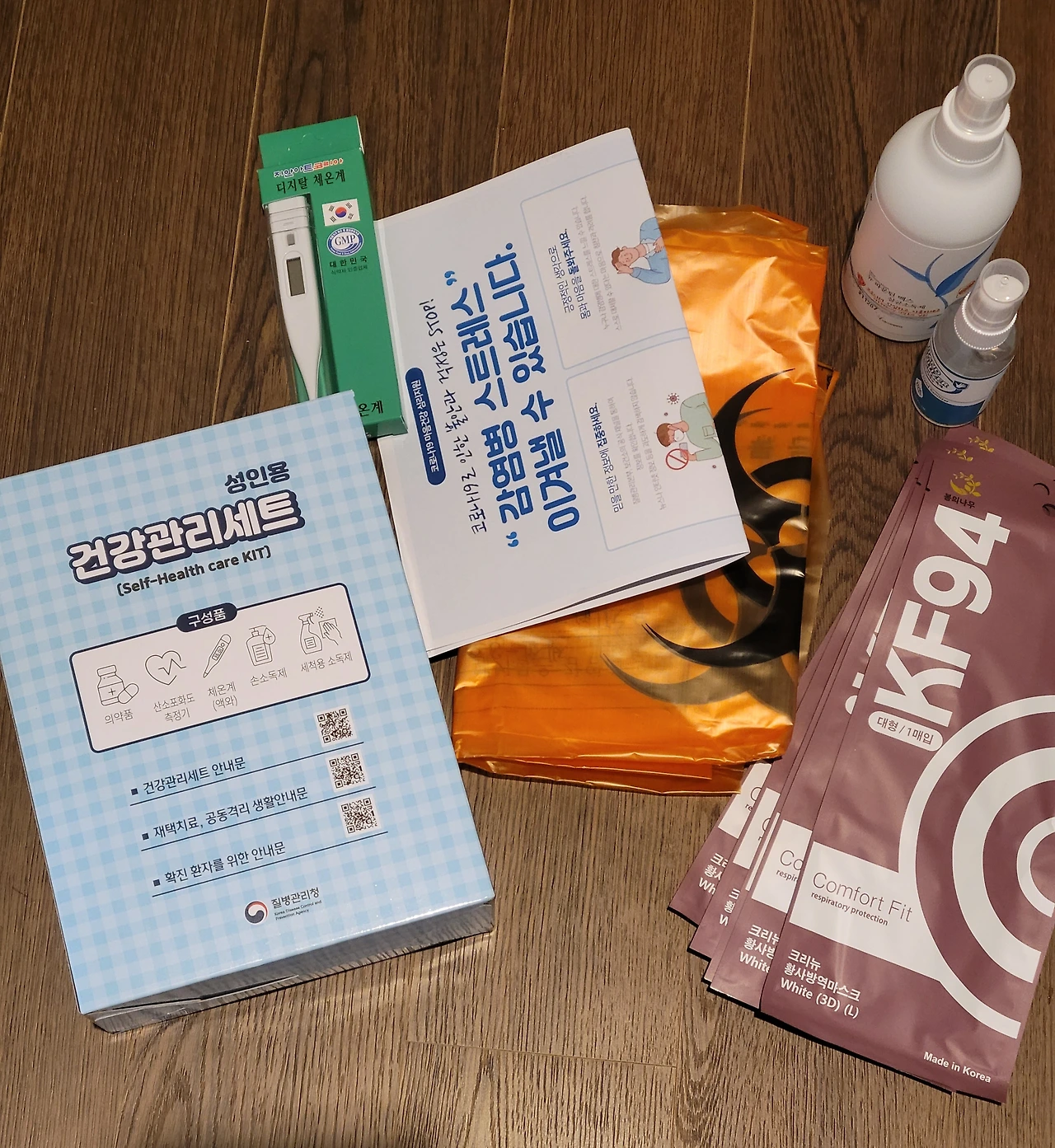 오늘 새벽에 보니까 아들에게 산소포화도 측정기, 체온계, 소독제, 마스크 등 각종 물품과 자가격리통지서를 포함한 서류들이 도착해 있었다. 아들이 확진 판정을 받고 방에 격리된 지 3일 째 되는 날에야 도착을 했으니 빨리 온 것은 아니지만 그래도 그 사이 별일 없었으니 다행이라는 심정으로 고맙게 받았다.