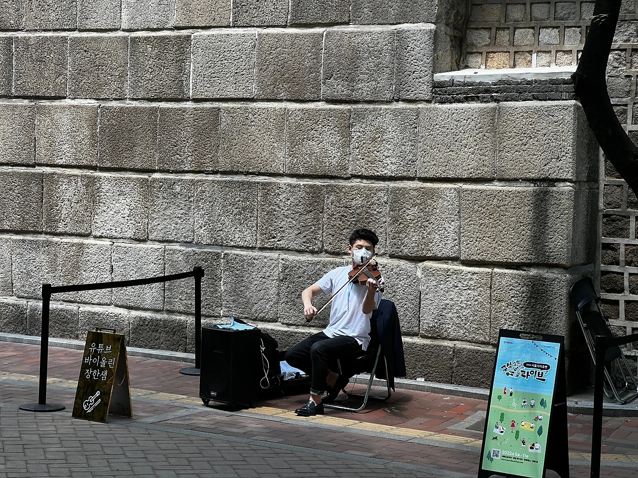 5월의 따뜻한 햇살, 달콤하게 살랑거리는 바람, 그 바람에 일렁이는 나무들의 초록 잎사귀들. 그리고 그 사이를 넘나들며 사람들의 귀를 기분좋게 간질이는 바이올린의 음색. 전통의 멋이 배인 고풍스러운 돌담길과 서양 악기인 바이올린의 조화가 이렇게 근사할 줄이야. 거기다 이 모든 걸 돈 한 푼 안 들이고 즐길 수 있다니...그야말로 '이보다 더 좋을 수는 없다'라는 말이 떠오르는 순간이었다.