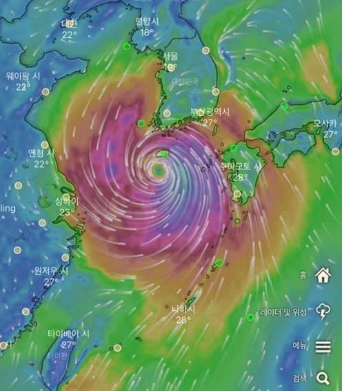 내일 부산 비행이 있는데, 아마도 태풍이 지나간 뒤쪽 꼬리를 따라 들어가야 할 듯하다.