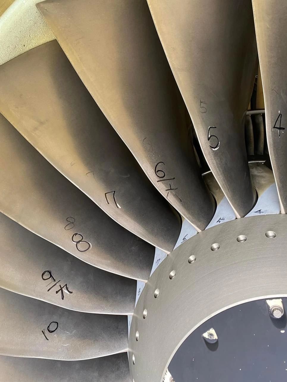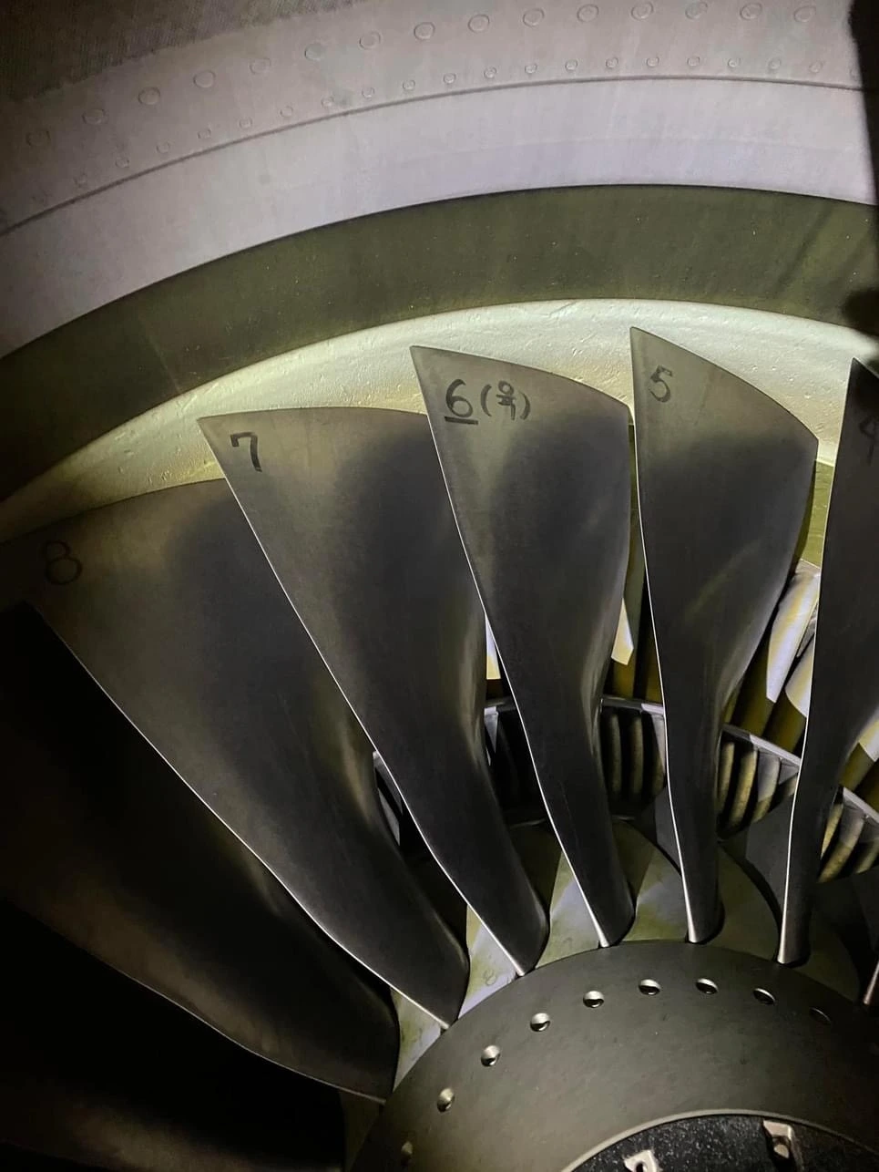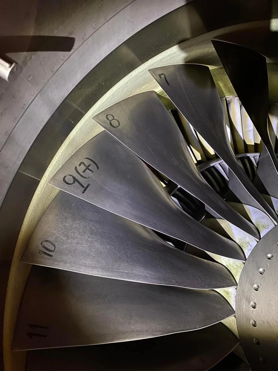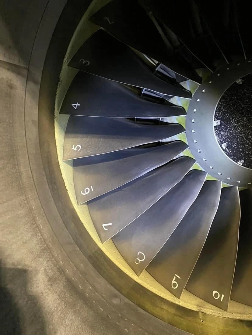 이 거대한 제트 엔진 안쪽을 살펴보면 재미있는 것을 찾아볼 수 있다. 바로 엔진 내부에 위치한 블레이드(blade)에 쓰여 있는 넘버(다양한 숫자들)들이다.