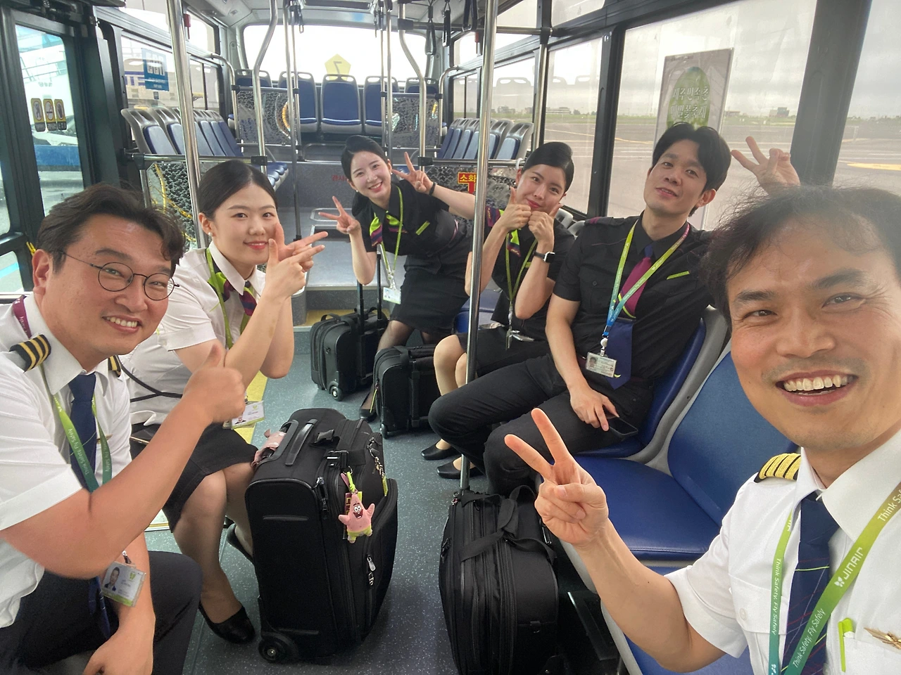 부산-제주-광주-제주의 연속 국내선 비행을 함께 해준 크루들에게 인사를 전했다.