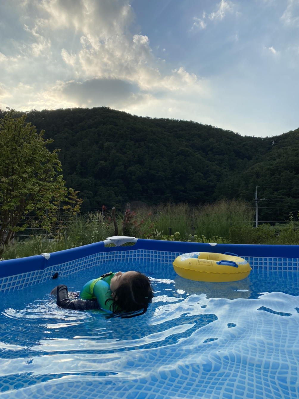 아이는 물놀이를 하니 저녁도 달게 먹고, 피곤한지 잠도 잘 잔다. 아이만 놀겠지 해서 작은 걸 샀는데 웬걸, 물놀이는 어른도 너무 신나는 일이다. 놀다 보니 셋이 쓰기에는 좁아서 내년에는 더 큰 걸 사서 6월부터 마당에 펼쳐 놓기로 했다.