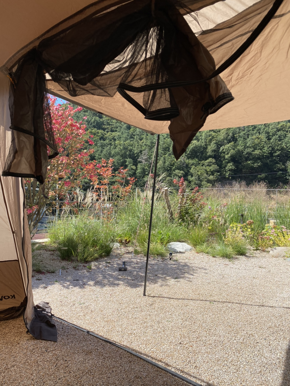 텐트의 조그만 프레임으로 바라본 마당 풍경은 새롭다.
