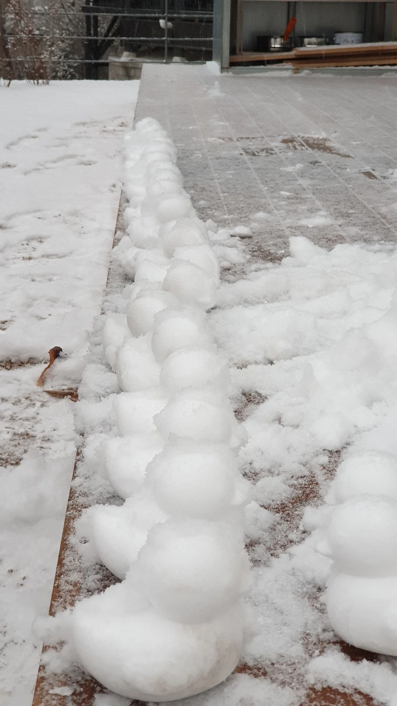 눈이 오면 길을 쓸어야 하니 제설 장비도 갖춘다. 눈 쓸기용 빗자루 하나, 눈 밀대 두 개를 창고에 보관 중이다. 빗자루보다 눈 밀대가 효율이 좋아서 남편과 하나씩 쓰고 있다. 눈이 오면 마을 공동 물품인 송풍기가 출동한다. 송풍기가 지나간 뒤 각자 자기 집 앞을 요령껏 쓴다. 아이는 눈을 치우는 엄마 아빠 옆에서 눈사람을 만들거나 집게로 오리를 제작한다.