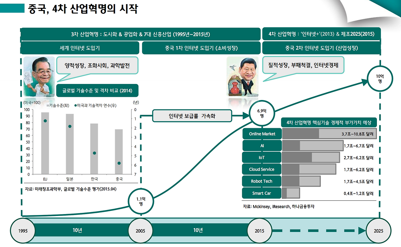 조용준 센터장은 중국 O2O의 성장 배경이 된 중국의 4차 혁명을 다음 두 슬라이드를 통해 소개했습니다.