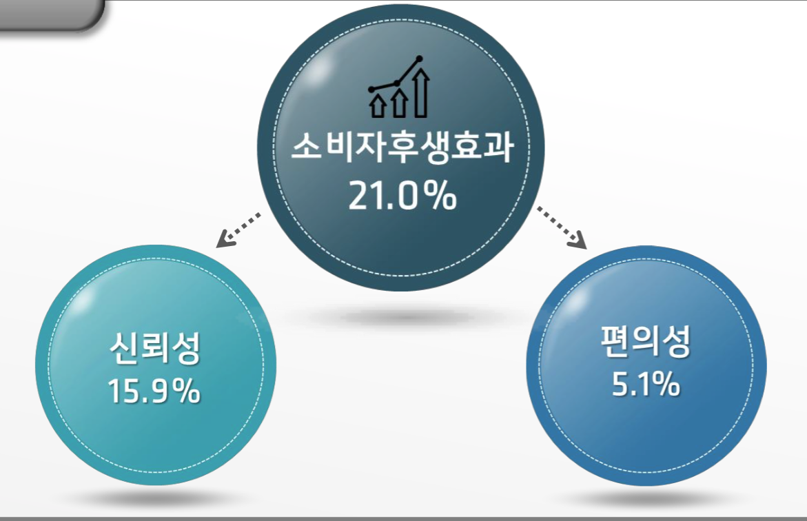 분석 결과, 속성 별 한계지불의사액의 규모는 다음과 같습니다. 예약 편의성 2.0%, 요금지불 편의성 3.1%, 서비스 신뢰성 11.4%, 가격 신뢰성 4.5% 입니다. 그래서 앱 대리 방식이 채택된 대리운전 서비스에 대해 소비자가 추가로 낼 의사가 있다고 밝힌 규모는 21.0%가 됩니다. 이 결과는 앱 대리는 콜 대리에 비해 소비자 후생 효과를 21% 높일 수 있는 서비스 양식임을 의미합니다.