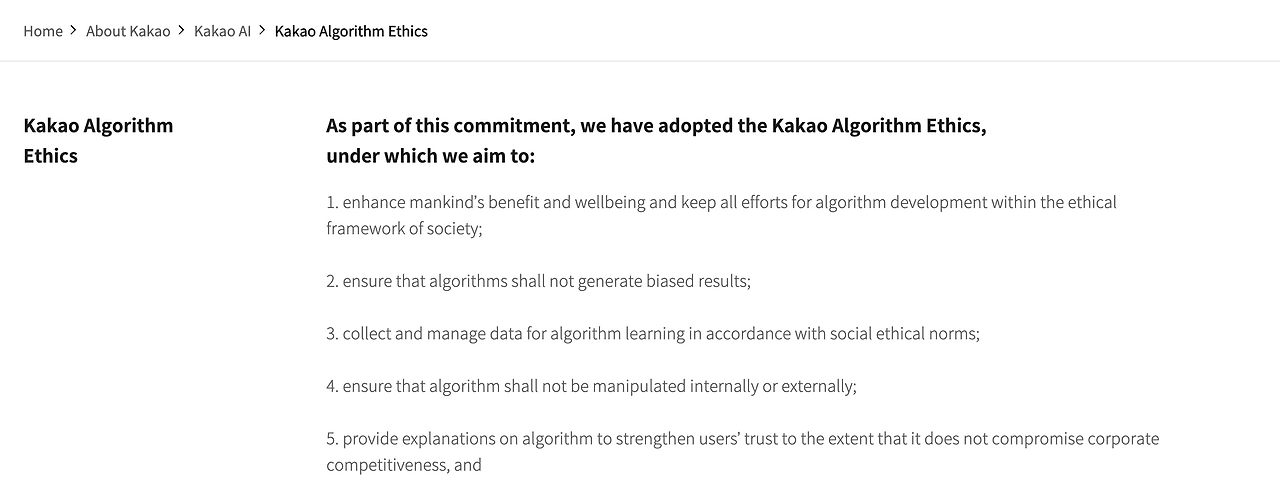 Kakao’s algorithm ethics is also applied to some Kakao’s service principles.