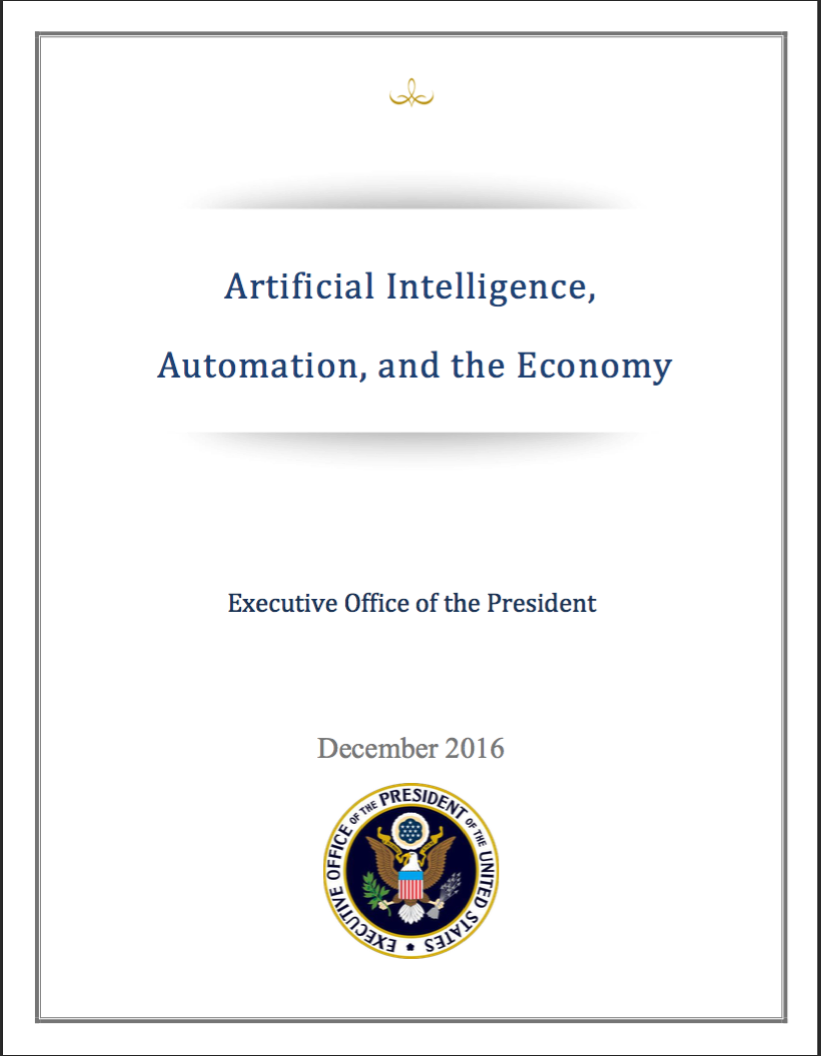 인공 지능에 의한 자동화의 경제적 효과에 대한 대응은 차기 정부와 후계자들에게 중대한 정책 과제가 될 것이다. AI는 이미 미국 직장을 변화시키고, 일자리의 유형과 근로자가 성공하기 위해 필요로 하는 기술을 변화시키기 시작했다. 모든 미국인은 자신이 학생, 근로자, 관리자 또는 기술 지도자인지 여부에 상관없이 이 문제를 해결하는데 참여하거나, 최소한 정책 토론에서 목소리를 내는 시민으로 참여할 수 있는 기회를 가져야 한다.