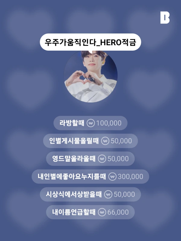 영웅 씨를 좋아하는 마음만으로도 저금한 돈이 쌓여가는 느낌이 뿌듯해요. 일반 적금을 모을 땐 나를 위해 모으는 돈인데도 아까워하면서 모으잖아요. 그에 반해 기록통장은 기분 좋게 팍팍 모을 수 있어 좋아요.