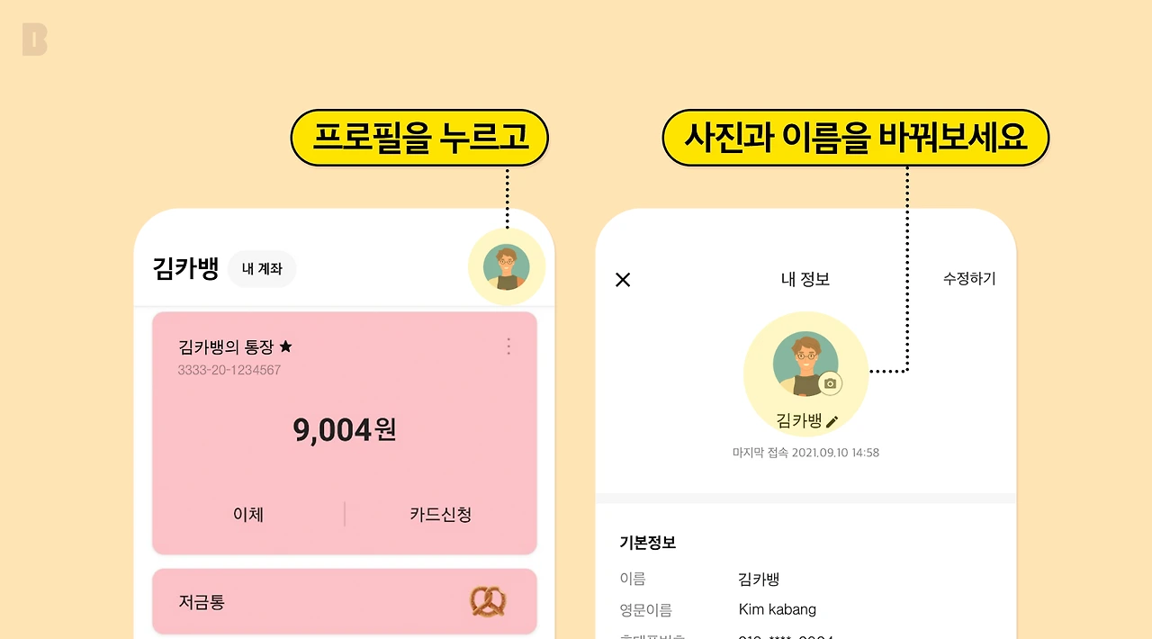 ※ 카카오뱅크 프로필은 연동된 카카오톡 계정과는 별개로 설정할 수 있습니다.
