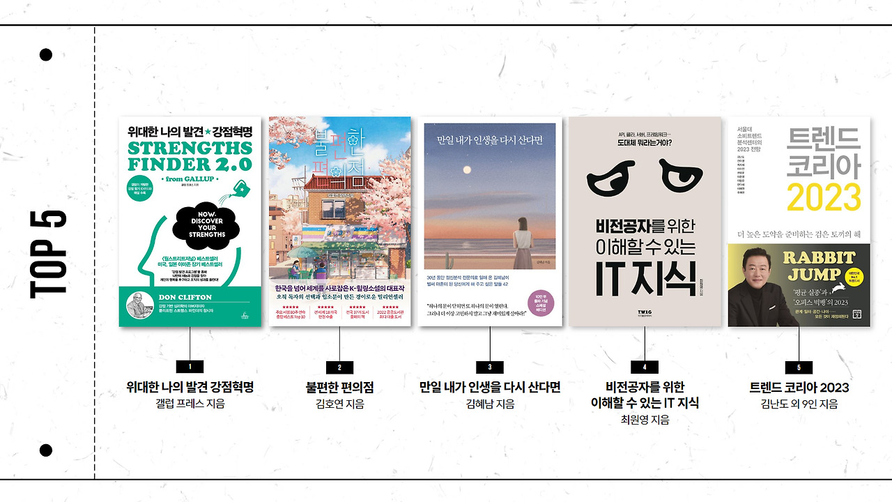 다음은 김호연 작가의 「불편한 편의점」이 2위를 차지했습니다. 서울역에서 노숙인 생활을 하던 한 남자가 어느 날 70대 여성의 지갑을 주워준 인연으로, 그녀가 운영하는 편의점에서 야간 아르바이트를 하며 생기는 일을 그린 장편소설이에요. 오랜 기간 베스트셀러였던 책이라 그런지 카카오뱅크 안에서도 큰 인기를 끌었는데요. 잠시 업무 생각에서 벗어나, 머리를 식히면서 읽기 좋은 따뜻한 소설이라 많이 선물되었던 것 같습니다.