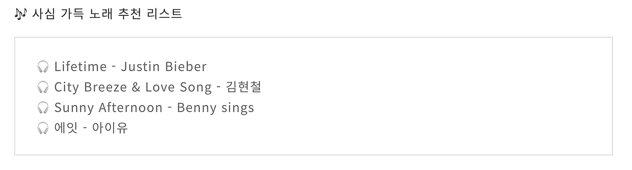 여기서 잠깐! 이 분위기에 어울리는 사심 가득 담긴 노래 추천 리스트를 공유합니다.