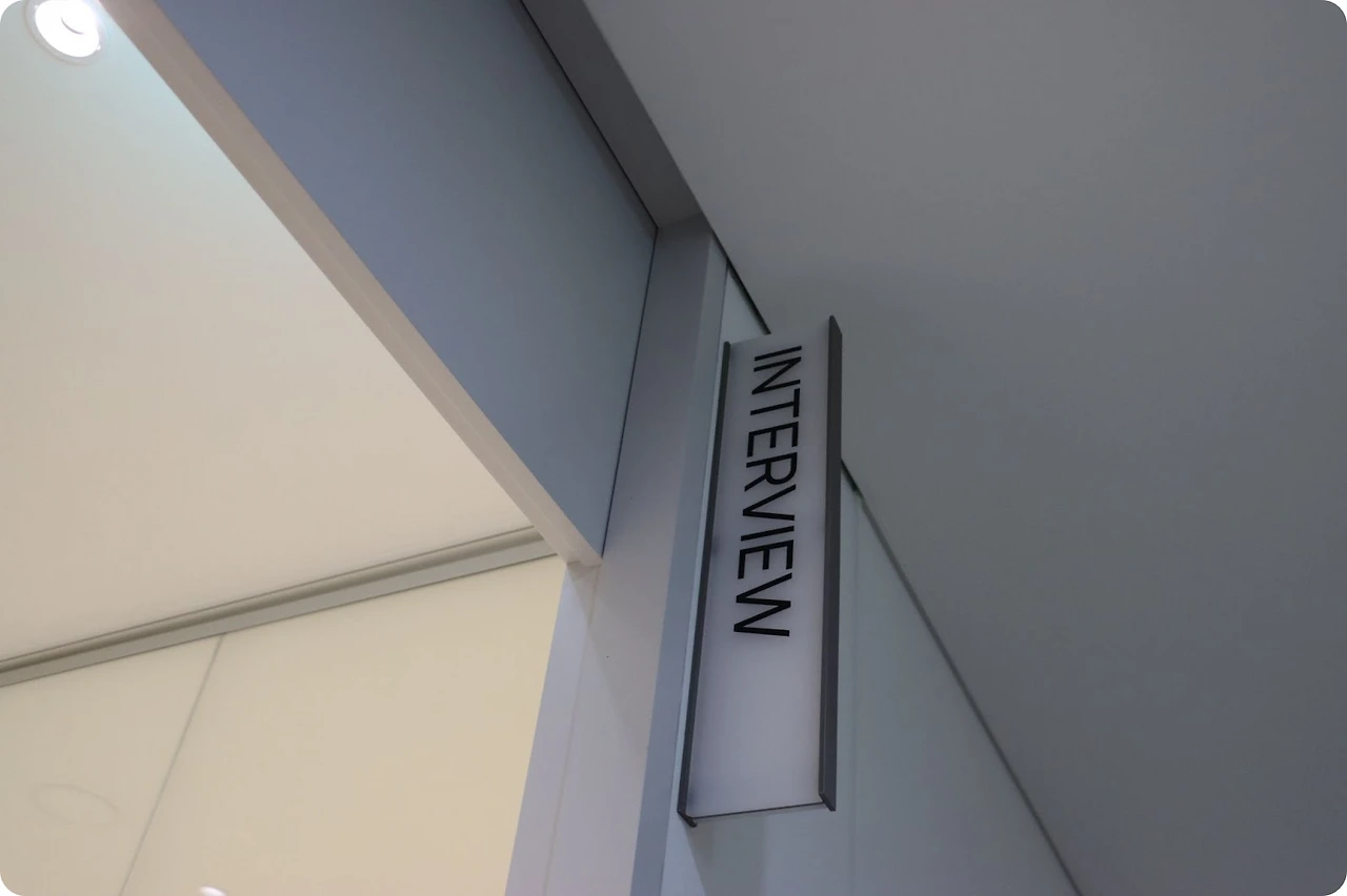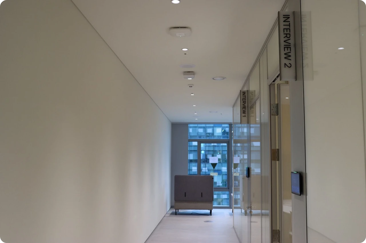카카오뱅크와 지원자님, 서로를 향한 열정이 느껴지는 이곳은 바로 인터뷰룸입니다.