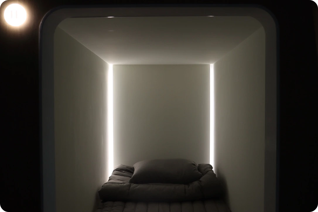 캡슐 호텔 같은 이곳이 회사 속 공간이라니! 멈춤이 필요할 때, 카뱅의 구성원들은 아늑한 PAUSE에서 휴식을 취하고 있답니다.