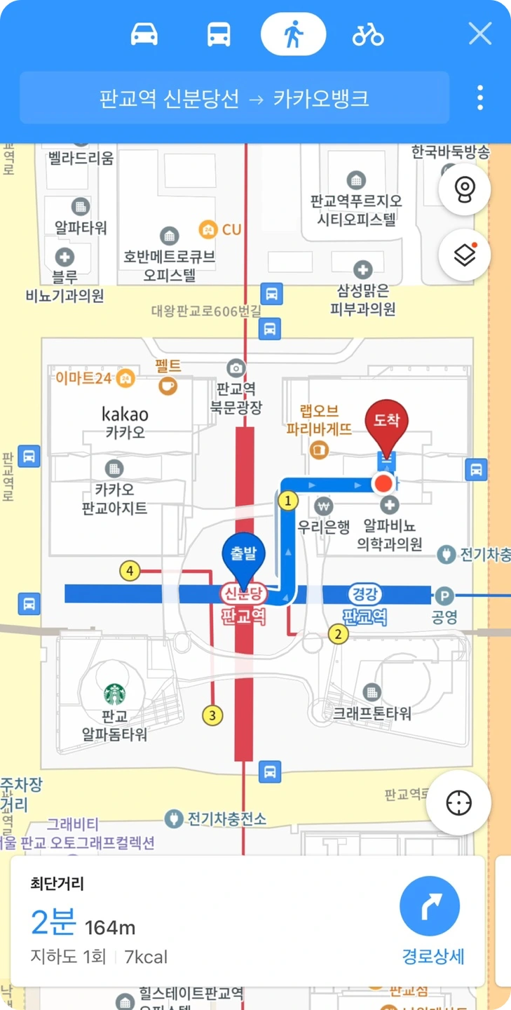 카카오뱅크는 판교역으로부터 164m의 거리에 위치한 초초초역세권이고, 지하철역에서 바로 회사로 연결되어 있어요.