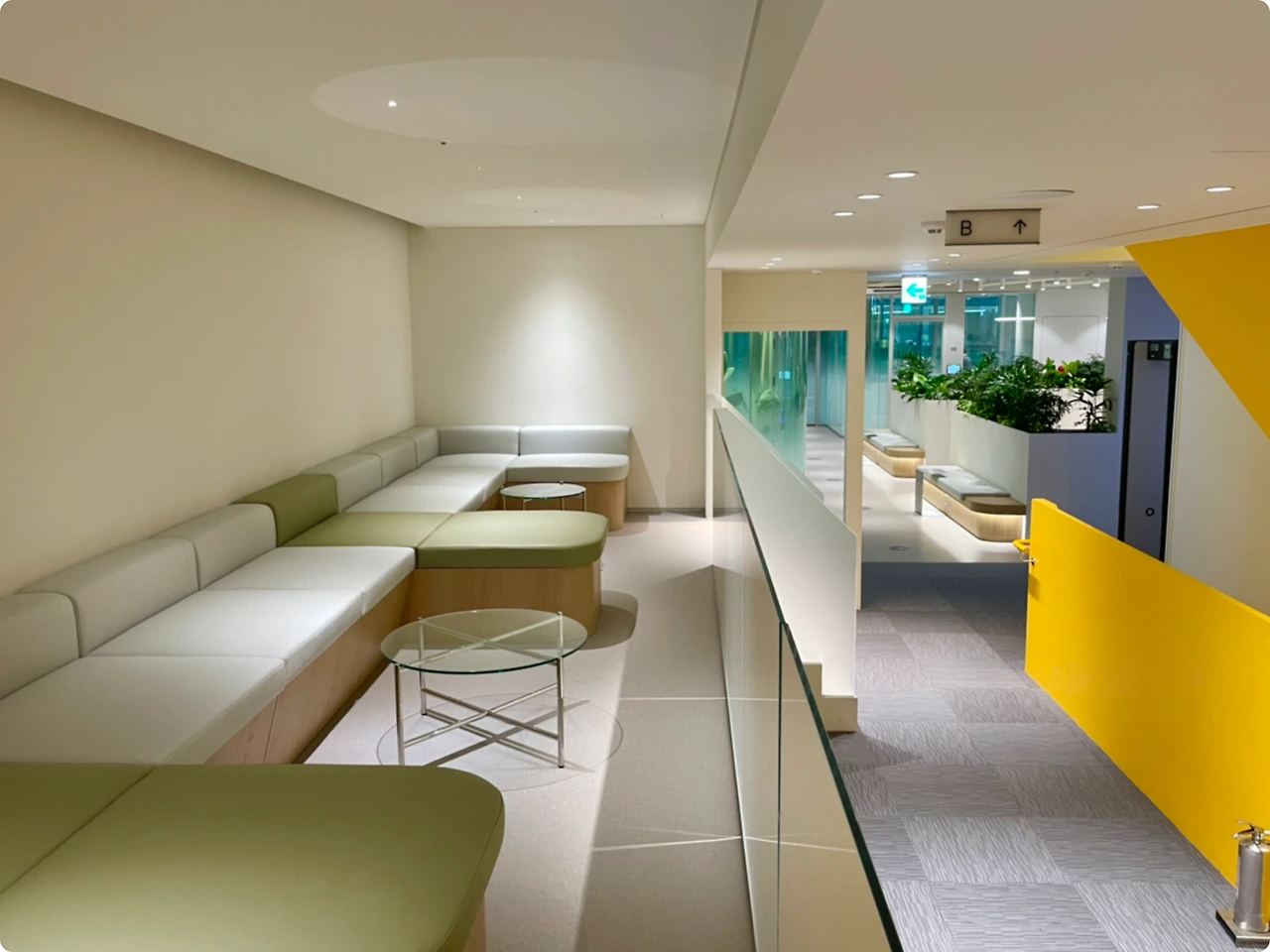 면접 전 지원자님들의 대기 공간을 소개합니다. 푹신한 의자에서 판교의 시티뷰를 즐기며 조금이나마 편안하게 면접을 준비하시길 바라는 마음으로 마련했습니다.