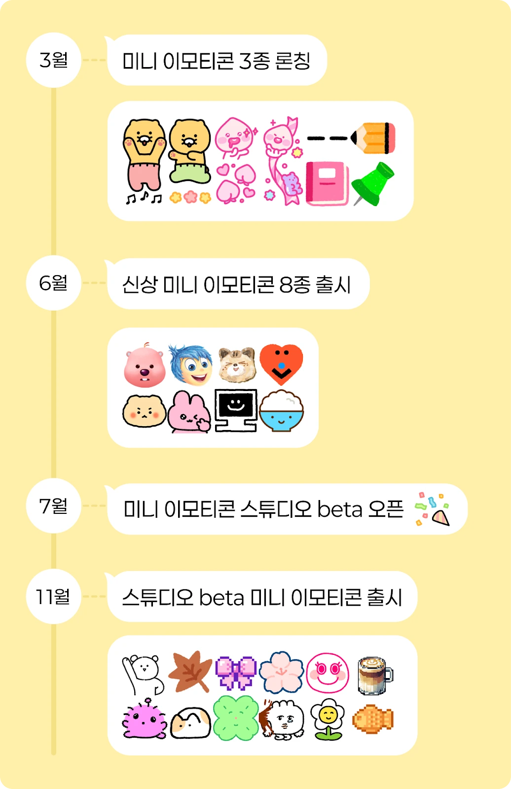 미니 이모티콘의 주목할 순간들, 타임라인으로 알아봐요!