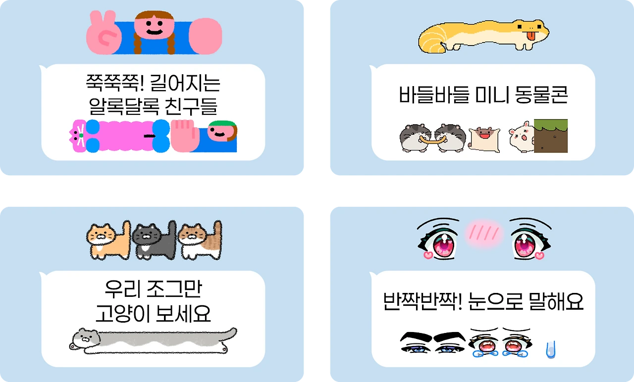 - 텍스트와 함께 메시지를 꾸밀 수 있는 것이 가장 큰 특징이에요.