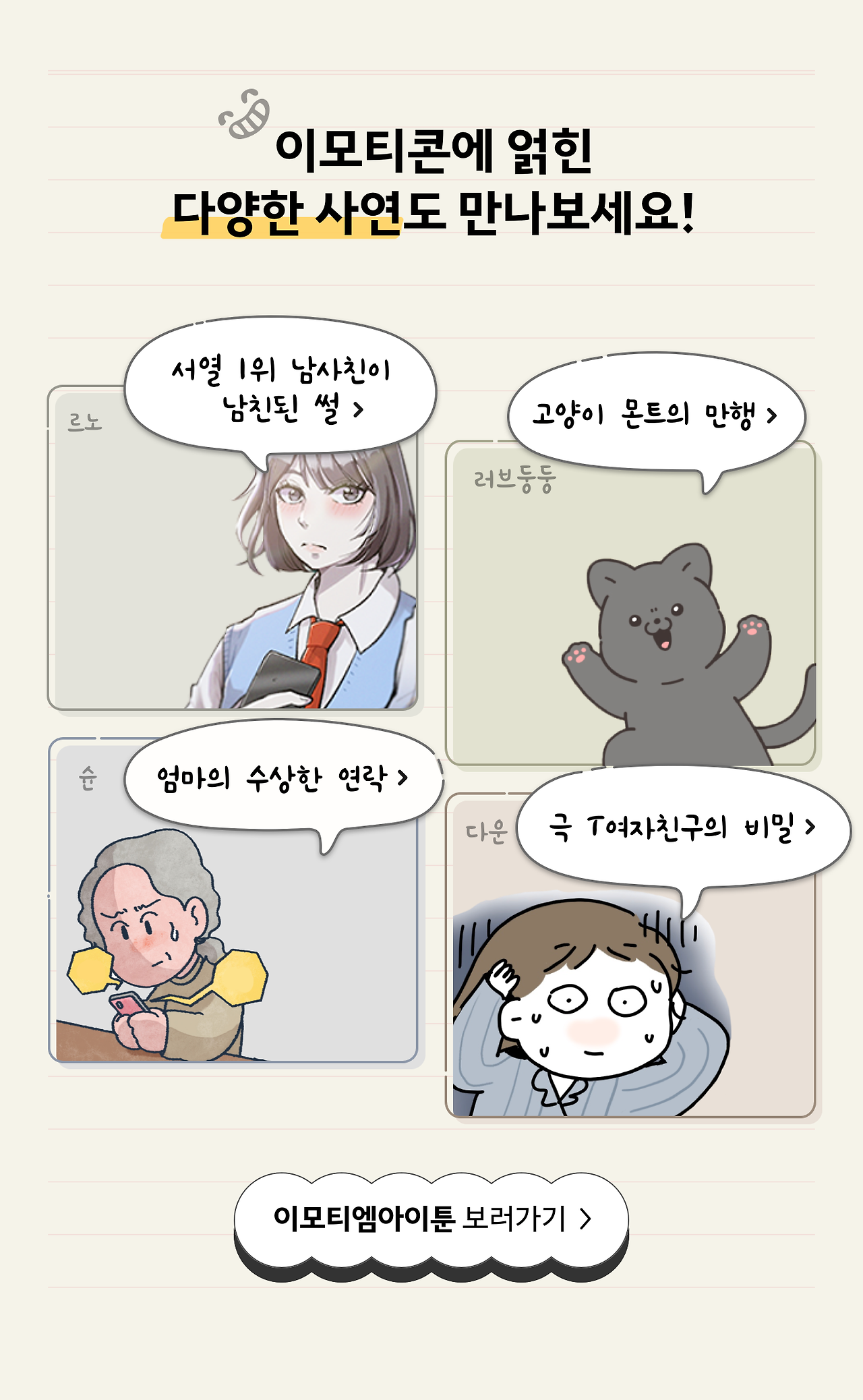 이모티엠아이툰 보러가기 > https://pf.kakao.com/_IcxhSz/97761614