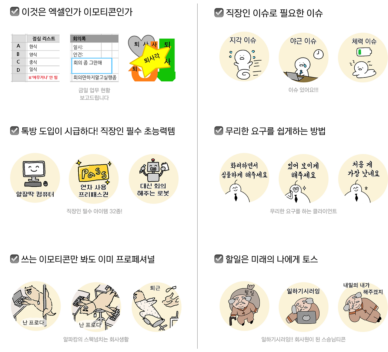 신박한 직장인 컨셉 이모티콘 = 재밌음
