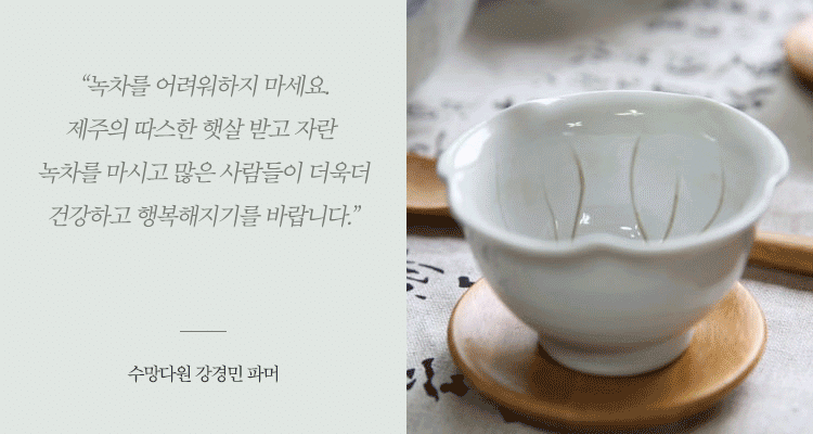 제주의 자연으로부터 온 제주 녹차가 당신의 삶에 푸른 쉼표가 되어드리길 바랍니다.