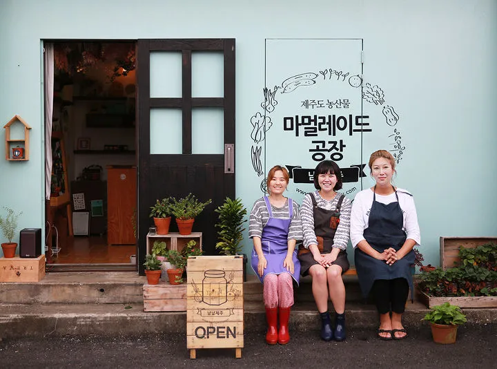 제주와 인연이 닿아, 사진동호회에서 만나 제주 농산물로 의기투함한 세 여자의 아주 작은 공장. 제주 신촌리 마을 골목에 있는 아주 작은 수제잼 공장 냠냠제주입니다.