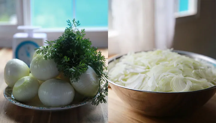 신선함이 생명인 양파. 제주에서 자란 친환경 양파를 사온 즉시 바로 손질하여 오래도록 볶아 완성됩니다.
