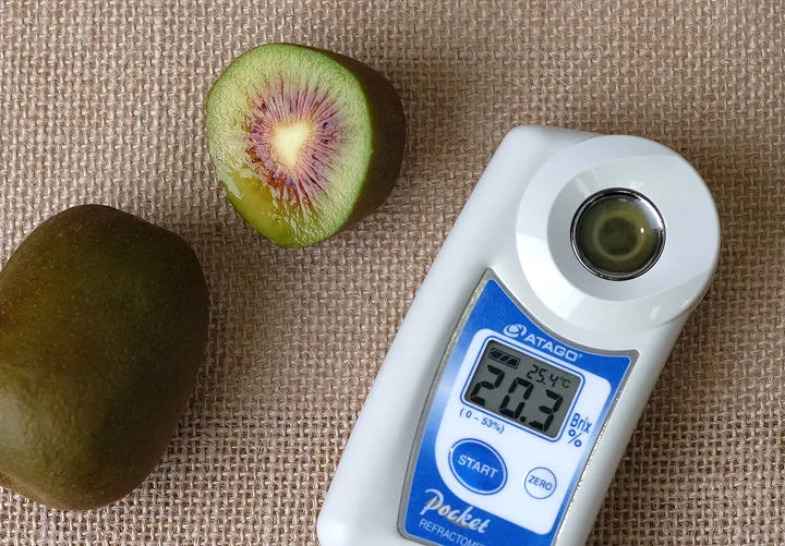 귀한농부의 후숙 된 레드키위는 무려 20 브릭스가 넘는 당도를 냅니다. 일반적으로 과일이 11 브릭스가 넘을때 맛있는 과일로 치게 되는 것에 비하면 레드키위는 자연이 주는 최고의 천연 당도를 가졌습니다.