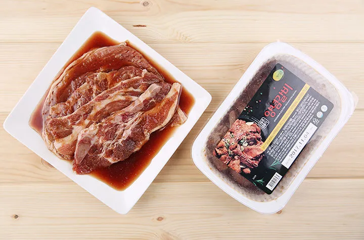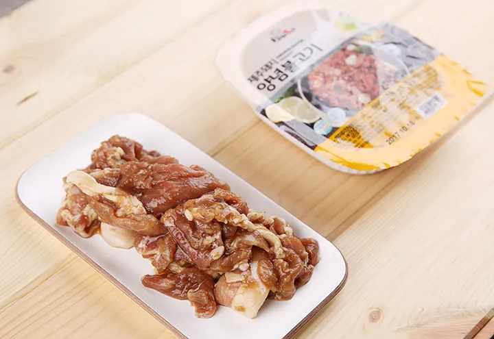 제주산 돼지고기 뒷다리살에 불고기 양념으로 맛을 낸 양념불고기와,