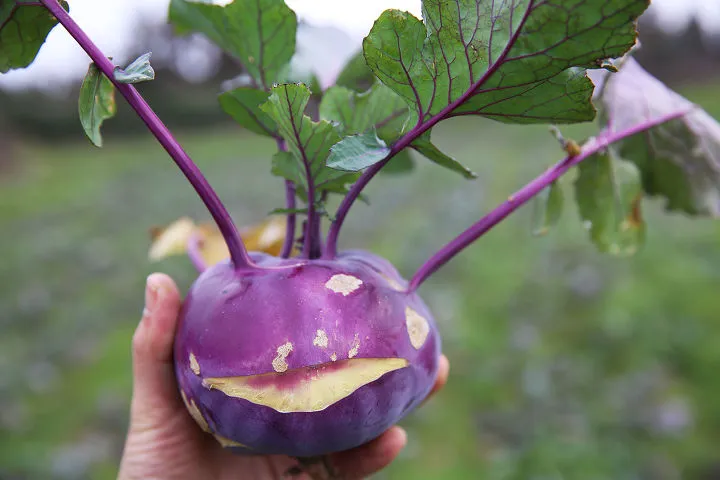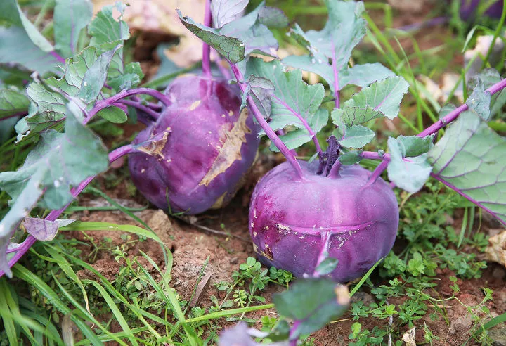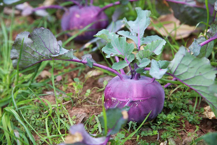 밭에서 숨바꼭질 하는 자연의 콜라비