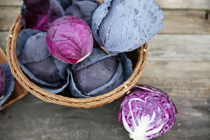 또 일반 양배추보다 포도당과 과당이 풍부한 적색 양배추는 지친 몸에 활력을 불어넣어주고 해독 작용과 소염 작용이 뛰어나 각종 염증에 소염제로, 여드름 피부의 완화에도 좋으며 칼로리가 매우 낮고 섬유질이 풍부해서 다이어트에도 효과 만점인 채소입니다. 몸도 마음도 건강하게 다이어트 하고 싶을땐 적색 양배추와 함께 해보세요.