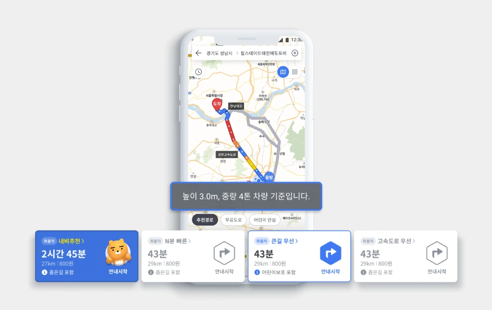 이제 높이, 중량 제한 걱정없이 카카오내비와 함께 안전 운전하세요.