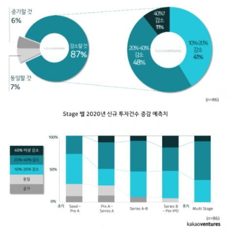 3월 31일 VC 업계 관계자 86분을 대상으로 설문 조사를 실시했고 해당 결과는 KV 패밀리사 대표님 및 설문 응답자분들께 전달드렸습니다. 당시는 코로나19 초기로 지금과는 다소 차이가 있을 수 있습니다. 그 점 참고하시고 봐주시면 감사하겠습니다.