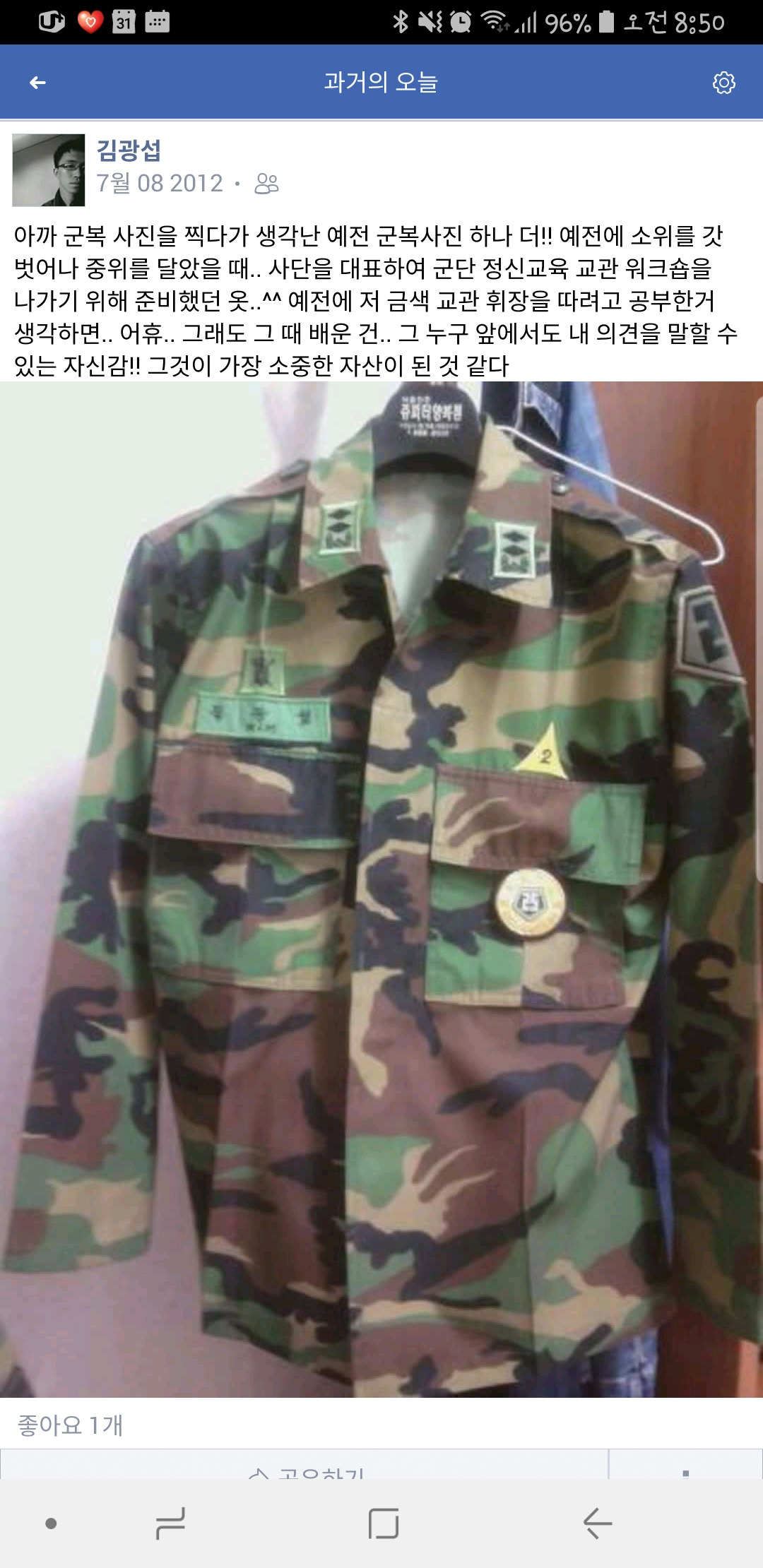 25사단 신교대 정훈장교 시절 군복 사진을 보았다