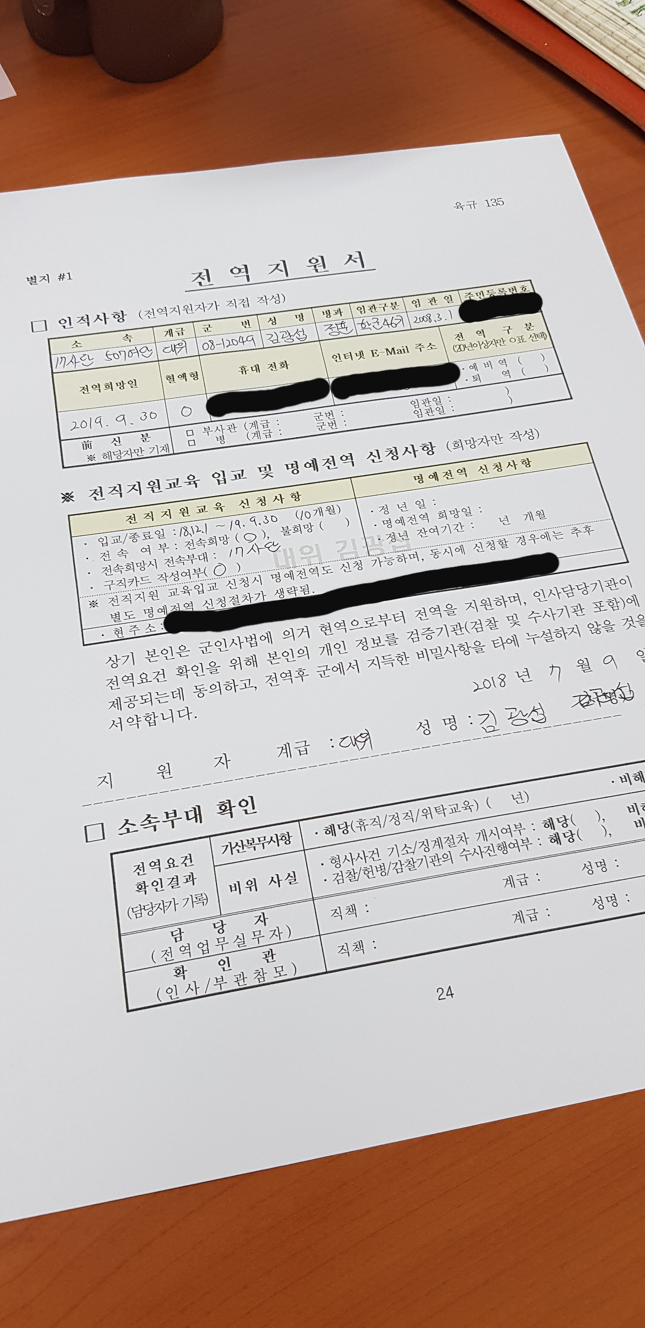 마쌍 보면 전역지원서를 보고 있으니 마음이 싱숭생숭 했다