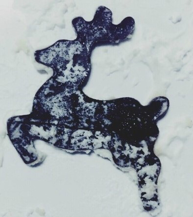 초콜릿 사슴은 케이크 눈밭 위를 달린다.